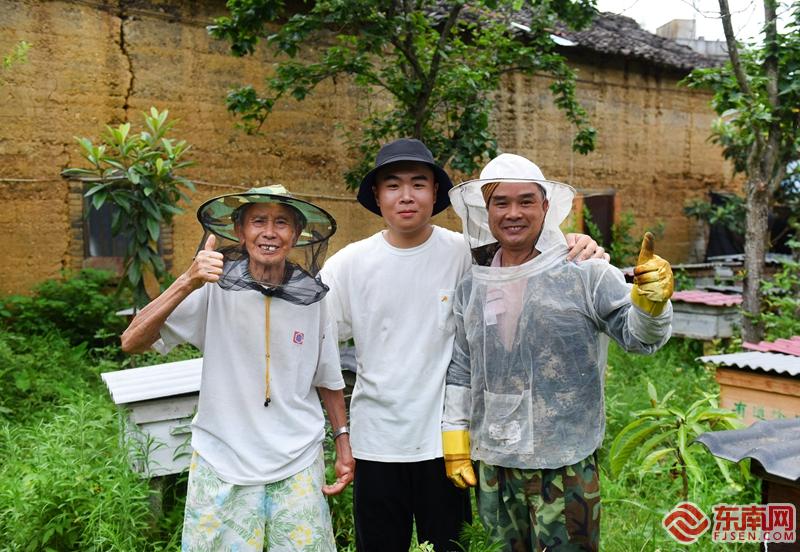 祖孙三代人在蜂场合影。黄杰敏 摄 时光荏苒,吴有通的儿子吴本轩20岁了,是一名大二学生,从小在蜂场里长大的他,在今年疫情防控期间,不仅帮忙管理蜜蜂、收割蜂蜜,还拍摄制作养蜂基地的宣传片,宣传推介家乡的特色产品,让好蜜卖出好价钱。 “把孩子培养成才,照顾好年迈的父母,坚持自己的养蜂事业,这何尝不是一种幸福呢?”吴有通乐呵呵地说。(黄杰敏 阮倩敏 文/摄) |
