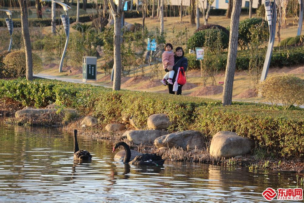许多市民专程来到武夷新区水之厅公园,看望休憩在此的黑天鹅、绿头鸭等游禽 东南网记者 陈艳 摄 |