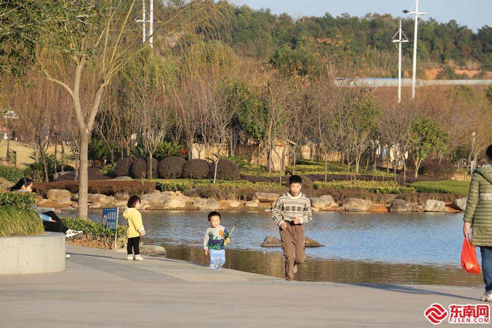 许多周边市民来到水之厅公园,沐浴冬日的阳光,享受天伦之乐。 东南网记者 陈艳 摄 东南网2月1日讯 (记者 陈艳)近日,在南平市武夷新区水之厅公园,许多市民群众前来游园休闲。据了解,武夷新区依托原有崇阳溪及丁墩溪自然水系,大力推进“水美城市”建设,在城市建设中依山就势、临水筑城,让自然山水与城市发展相得益彰。在南林核心区水之厅公园,水域面积达到750亩,是闽北最大的亲水公园。