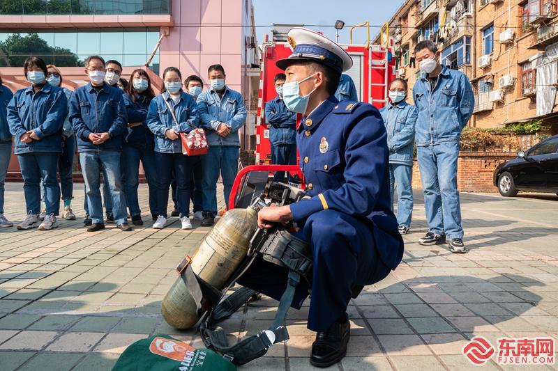 图为消防指战员向员工讲解消防器材装备。王浩焜 摄 开展消防安全宣传培训。“大家看过来,这是我们的消防知识宣传展板,我们一起学习一下日常居家生活应该注意的消防安全知识。”活动现场,消防指战员为企业员工讲解如何正确拨打“119”报警电话、不同类型灭火器的正确使用方法、火灾发生的普遍原因、如何有效预防火灾、发生火灾后如何自救逃生等消防常识。并普及家用电器、电动车的使用规范、相关禁令及如何安全使用燃气等消防知识。 |