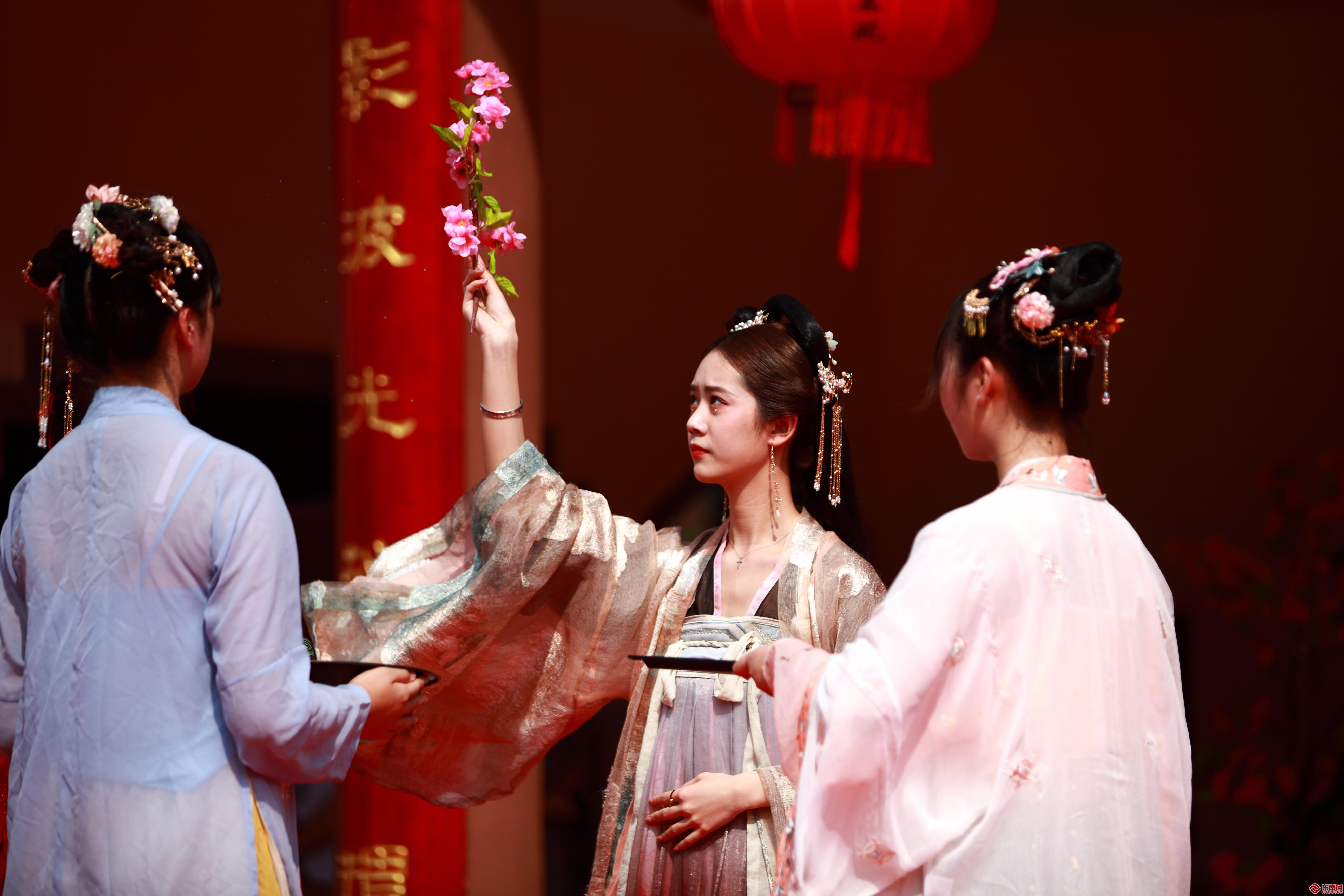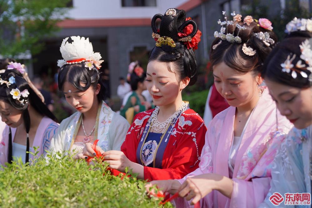 中国武夷第三届汉服花朝节活动现场——挂红祈福 范成忠 供图 秉承“振兴中国传统节日,丰富传统节日文化内涵,形成新的节日习俗”的精神,同时向中国共产党建党100周年献礼,活动依托传统节日,以花朝节为主题,以汉服文化为载体,宣传武夷山水美丽风光和朱子文化内涵,融入花、茶、旅、艺,以传承和展示中华优秀传统文化。此次活动设置了行古礼、百花祭典、花神展示、扑蝶寻诗、挂红祈福、才艺表演、投壶互动、簪花游园等多个充满了仪式感的环节,再现花朝节传统文化之美。让大家在感受美好春天的同时,也领略了传统文化的新魅力。活动吸引了700余名的汉服爱好者及游客到现场围观体验,4000余人通过线上直播观看。