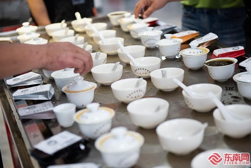 6月3日,在武夷山市武夷街道高苏板村,采购商正在品鉴、挑选武夷岩茶。伊凡 摄