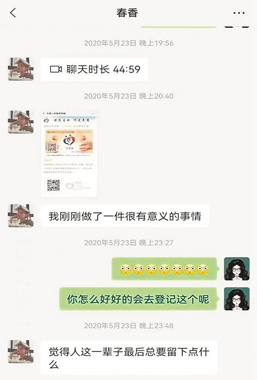 在陈春香与姐姐的聊天记录里,她说“人这一辈子最后总要留下点什么”。(资料图片)