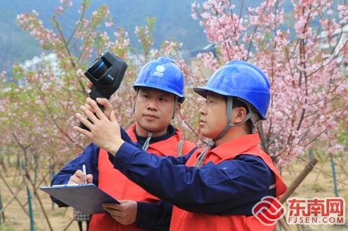 近期,政和县七星溪河畔渡头洋段沿河的樱花竞相开放,吸引着广大游客前来观赏。该公司组织国家电网福建电力“双满意”(政和)共产党员服务队来到景区,对涉及的供电线路和电力设备进行细致检查和红外测温,同时采用“人工+无人机”特巡方式,对景区内电杆、线路开展“地毯式”隐患排查,做到及时发现隐患并消除。