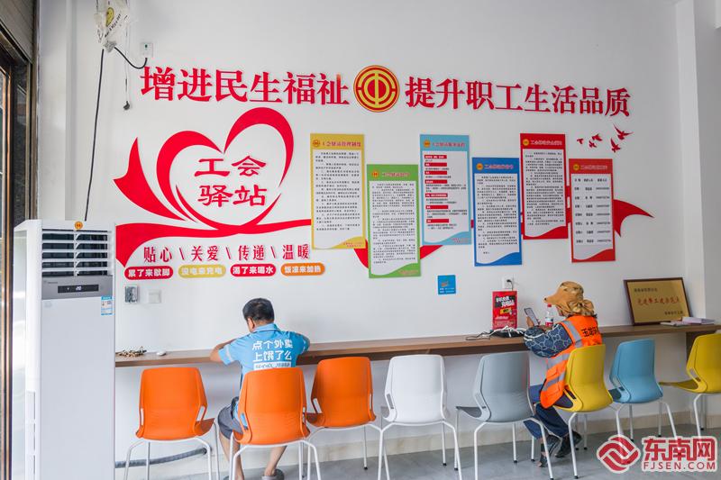 东南网7月12日讯(通讯员 周燕兰 蔡骏翔 叶建辉 黄文斌)7月11日上午,在工会驿站·饿了么站点,众多环卫工人、外卖配送员等劳动者在此歇脚休息,驿站提供了冷饮、雪糕等清凉解渴的食物,在凉爽舒适的空调环境下,大家自由地交谈、娱乐……