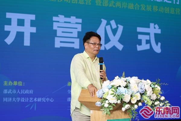 陈显卿在致辞中向参加创意营的导师和学员表示热烈欢迎,他指出,“移动创意营”为有志设计的青年大学生提供创意第二课堂,足迹遍布全国各地,在国内外有着广泛而深远的影响。本次“移动创意营”在邵武“安营扎寨”,汇聚了两岸设计领域众多精英导师和优秀学子,共同相约一场文化之旅、山水之旅、发展之旅、烟火之旅,为邵武带来一次创意与视觉的盛宴。希望通过此次活动,导师和学员们沉浸式探索邵武的历史人文、自然风物,加强城市品牌创意设计,为打造更有吸引力、更具辨识度的“邵武是个好地方”城市名片增光添彩;把更好的创意资源导入邵武,把更强的技术带到邵武,开启竹产业发展的思想碰撞,探索竹产业创新发展新路径,助力邵武竹木产业创新蝶变;以竹会友、以情促融,为邵台交流交往、联络联谊奠定坚实基础,为两岸青年交友交心、厚植情谊搭建平台,为推动邵台各领域融合发展、两岸同胞心灵契合贡献更多力量。