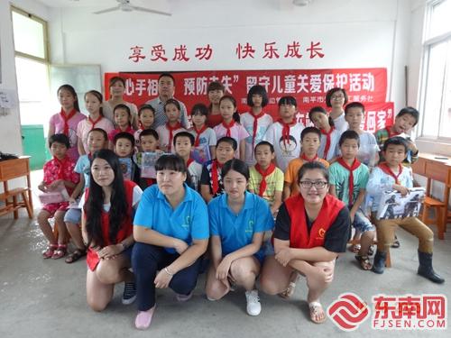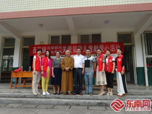 2017年,教师刘久智(左五)参加西芹镇关爱留守儿童献爱心活动。受访人供图