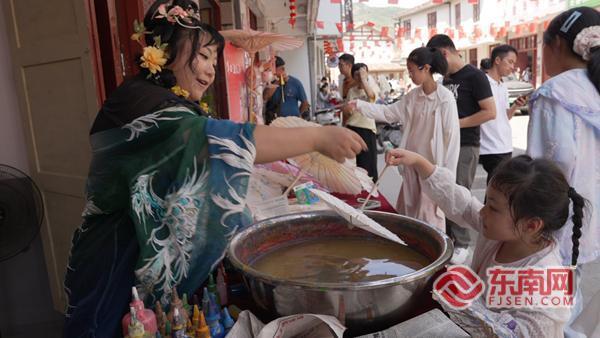 1日,记者步入大埠岗镇非遗匠人体验街区,热闹景象扑面而来——洋口油纸伞染缸前,游客手执白伞,在染缸内游走创作;非遗合香珠展台旁,大家专注地揉捻香泥、塑造珠形;宋代点茶体验区里,人们跟着匠人学习击拂茶汤,感受古茶礼的雅致。每个非遗互动体验馆前都挤满了人,只要游客出示“游园券”,就能免费体验三项非遗项目,不少人体验后直呼“体验感拉满”。“参加这个活动,我学到了很多学校里学不到的东西,也加深了我对非物质文化遗产的了解。”游客陈羽笛说道。