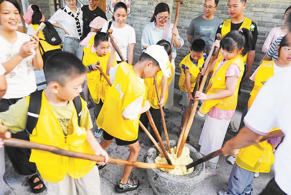 孩子们在旧县乡体验黄粿制作。 (松溪县融媒体中心供图)