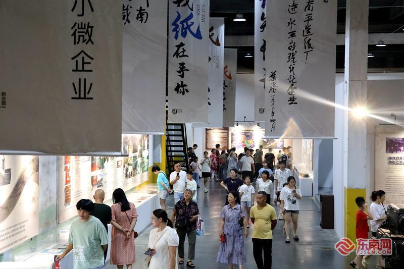 国庆期间,市民在南纸1958创业园内观看南纸艺术展览 东南网记者 肖练冰 摄