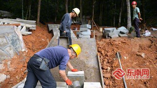 东南网10月14日讯(通讯员 张高鹭 张少杰 黄慧聪)10月14日,在建阳区崇泰街道东泽村的健身步栈道休闲项目施工现场,工人们正有序开展转运土方、石材铺贴及清理现场垃圾等工作。该项目总投资约480万元,于今年7月份正式开工建设,预计11月中旬全面完工。