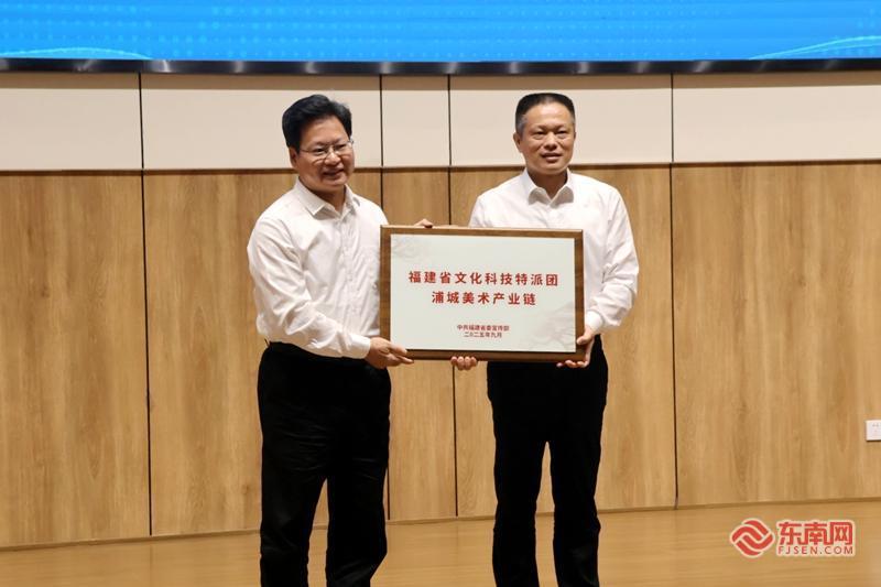 会上,还为福建省文化科技特派团(浦城美术产业链)授牌;特派团负责人、福州大学厦门工艺美术学院副院长张健汇报美术产业链工作对接进展情况和下一步工作安排。