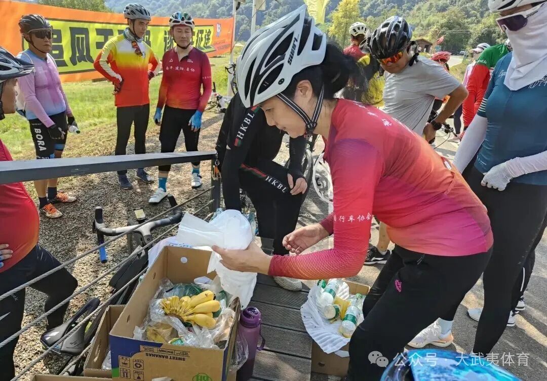 中途在武夷山阿勒泰驿站休整时,工作人员备好简餐与补给,骑手们交流感受、分享沿途见闻。休整过后,骑手们重新集结返程,秋日阳光洒在溪面上,骑行队伍与两岸风光相映,构成灵动的移动风景线。
