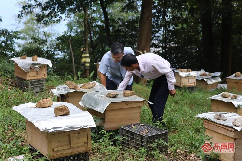 为破瓶颈的叶有才急在心里,当得知福建农林大学蜂学与生物医药学院副院长陈大福教授来延授课,便马不停蹄前去求教。陈大福利用午休时间赶往蜂场查看,给予他科学养蜂技术指导。