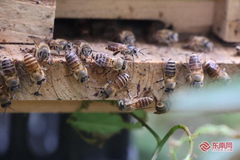 蜂箱口的中华蜜蜂 东南网记者 肖练冰 摄