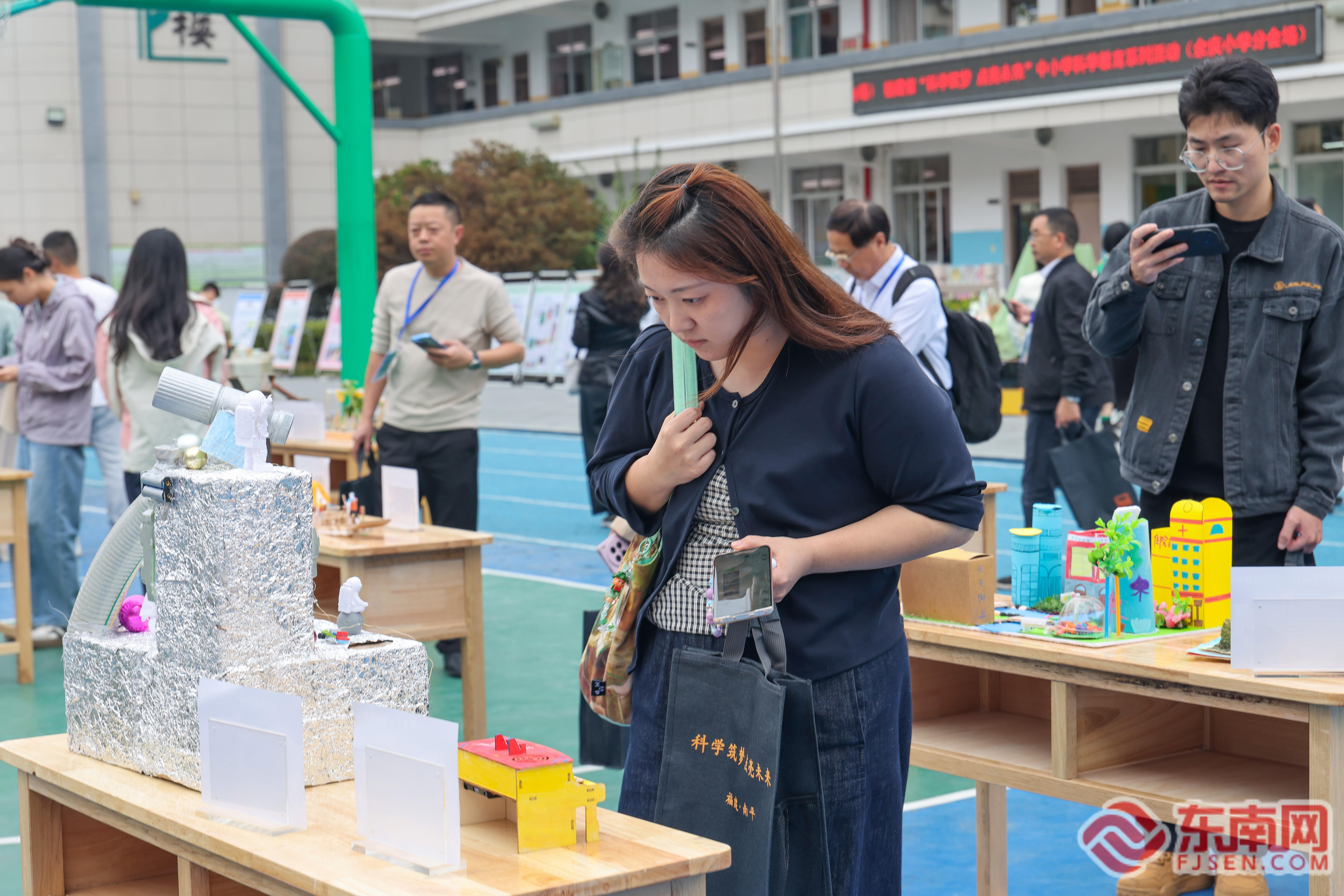 活动现场,内容丰富多彩,互动性强。活动设置了课程展板区、科学互动体验区、科创区以及科技作品区等多个功能区块。特别设立的“市集”区,分为“非遗传承篇”“动物篇”“植物篇”“环境篇”等主题,通过寓教于乐的方式,让学生们在动手实践和亲身体验中感受科学的魅力,吸引了众多师生代表驻足参与。