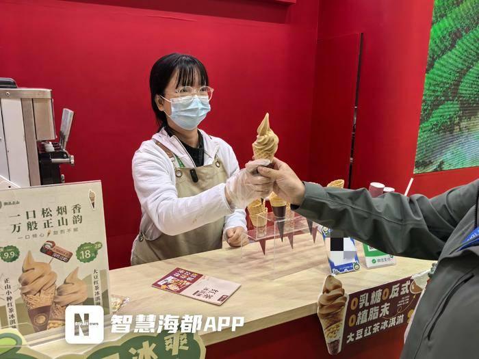 “没想到茶叶能做冰淇淋,还这么好吃!”刚步入会展中心一楼的茗茶馆,就能看到购买红茶冰淇淋的游客排成了长龙,还有家长带着孩子专程等候品尝正山小种、大豆红茶等口味的茶味冰淇淋。游客陈先生连连称赞:“清甜的冰淇淋里带着清爽的茶香味,一点都不腻!”