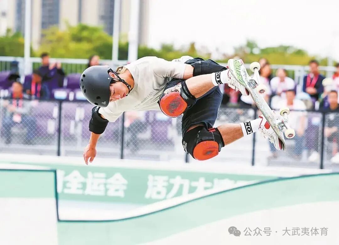 11日,第十五届全运会滑板比赛在惠州市体育运动学校落下帷幕。吴博文在男子碗池赛决赛中,以84.09分夺得一枚铜牌。