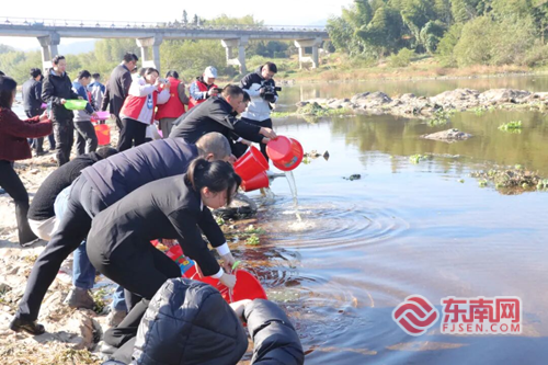 东南网11月25日讯(通讯员 王中页)11月20日,浦城县在南浦溪开展以“保护水域生态,共筑和谐家园”为主题的增殖放流活动,向南浦溪投放白鲢、鳙鱼、赤眼鳟、草鱼等优质经济鱼苗7.5万余尾。