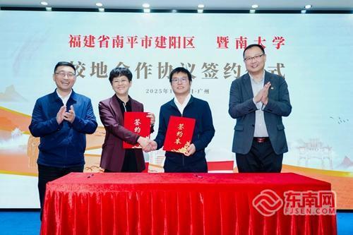 建阳区人民政府与暨南大学代表正式签署了校地合作协议。未来,双方将聚焦文化传承、教育研学、医疗服务等重点领域,建立常态化、长效化合作机制,推动南平及建阳的生态人文资源与暨南大学的教育科研优势深度融合、双向赋能,携手开创校地协同发展新格局,为区域高质量发展注入强劲动能。
