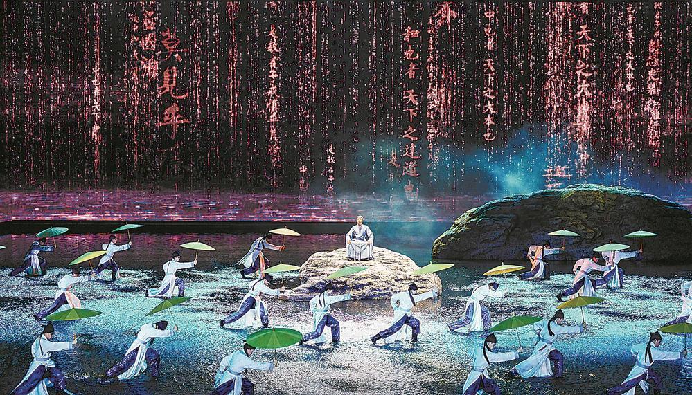 “现在游客对文旅演艺的审美要求,已不满足于‘看个热闹’,大家更期待沉浸式、交互式的观演体验。”剧目市场部负责人郑青荣说,演出打破“视觉为主、听觉为辅”的传统模式,从人物手持的竹简卷册、服饰纹样,到书院讲堂的一几一席、礼仪用具的形制,主创团队均严格考据史料,打造“一步一景、一景一理”的视听诗篇。