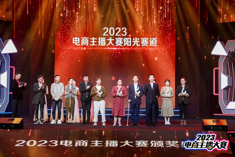 陈金华(右四)获得全省“2023电商主播大赛·阳光赛道”冠军 高丽平 摄