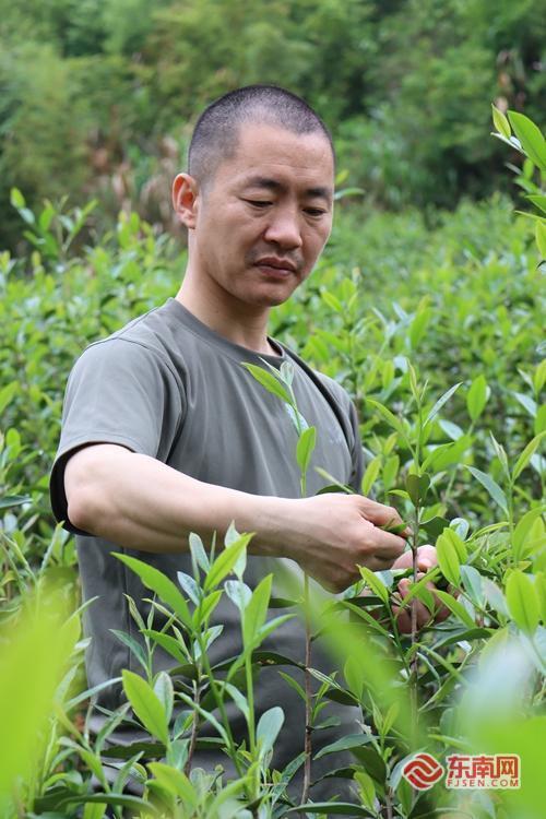 陈金华在自己茶山采摘茶叶 东南网记者 郑正华 摄