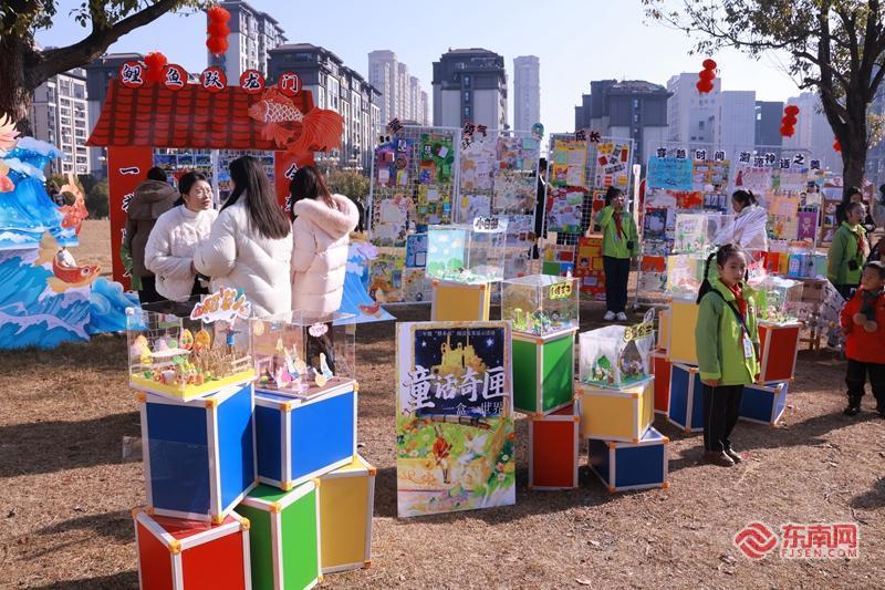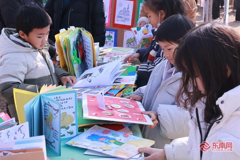 小朋友观看各小学学生制作的书画作品 东南网记者 肖练冰 摄