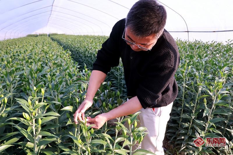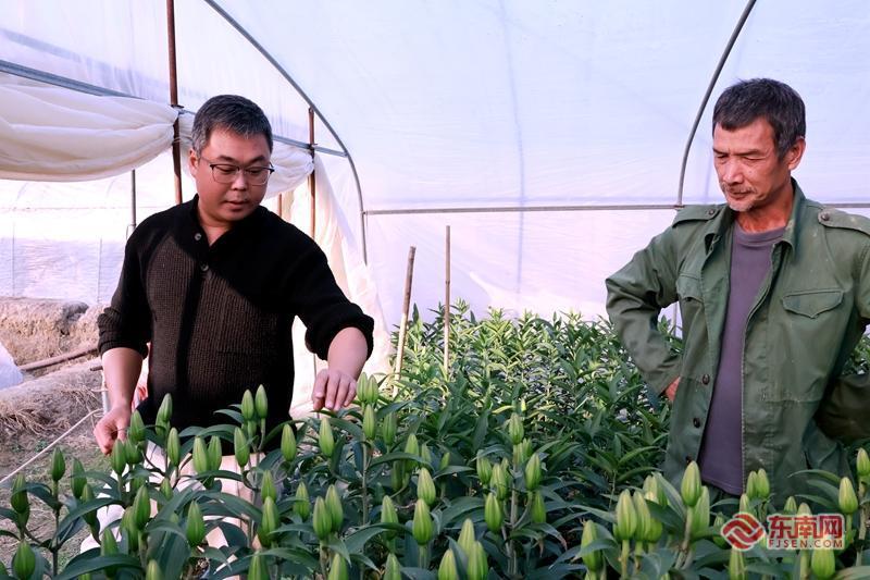 秉承着“不打无准备之仗”的信念,从未接触过花卉种植的他便四处求学,先后到过广州、浙江海宁、昆明等地考察,与各地种植户交流学习种植经验,并总结了一些经验做法。“但各地的气候环境不同,也不能完全照搬。”因此,他以“学徒”的身份,在种植基地摸索学习。又因地制宜,选定种植适宜延平本地气候特点的OT型与东方百合品种,率先在溪后村种植了12亩地,当年便实现产值60多万,获利可观,为后续产业发展打下了基础。