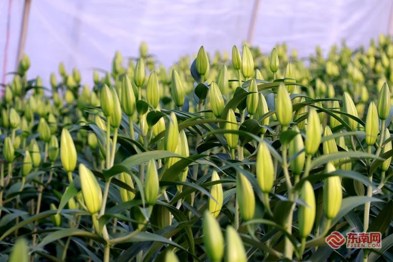 溪后村大棚内含苞待放的百合 东南网记者 肖练冰 摄