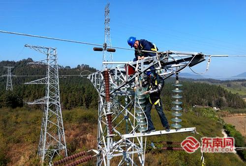 东南网1月6日讯(通讯员 叶凌云)近日,国网浦城县供电公司输电运维班工作人员林幍、左贤华在二十七米高空的寒风中精准操作,成功完成浦城县仙阳镇110千伏工笔线40号铁塔B相绝缘子更换、鸟粪清理、防鸟挡板安装等作业,为电网迎峰度冬高峰用电提供可靠保障。