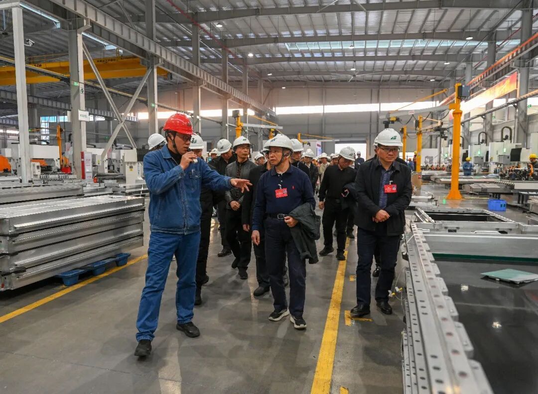 委员们在视察武夷新区汽车零部件产业园闽铝轻量化项目
