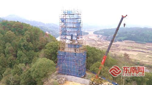 东南网1月23日讯(通讯员 张高鹭 刘剑锋 张怡雯)1月22日,记者走进建阳区麻沙镇梁墩村酒坛山公园项目建设现场,只见“刀浮屠”——麻沙建本观光纪念塔建筑主体已完成封顶,工人们正有条不紊地开展内外墙粉刷、灯光安装等后续作业。