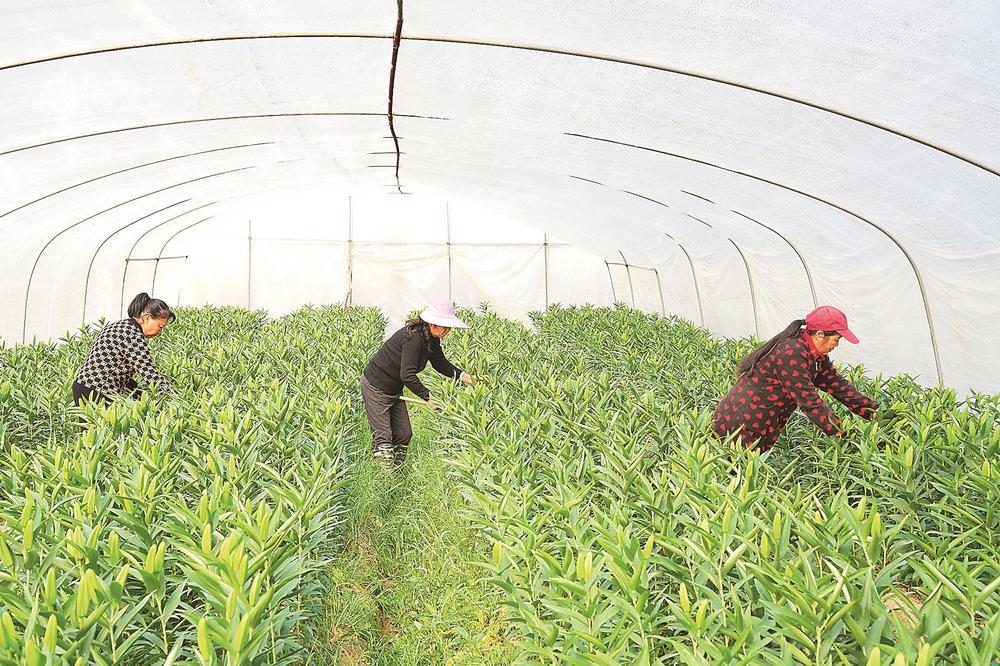 种植户在大棚采摘百合