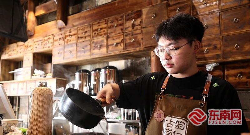 中药奶茶店主高凌旭正在制作奶茶 林诗颖 摄