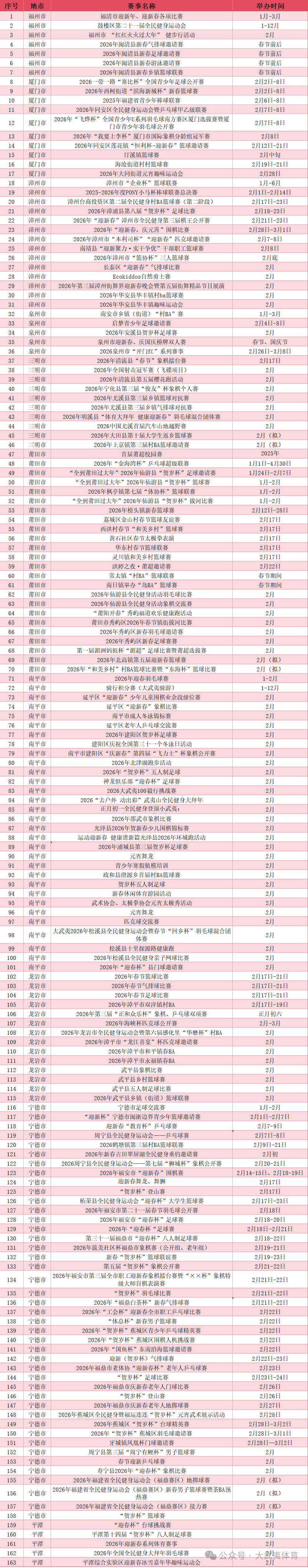 现发布福建新春期间赛事清单