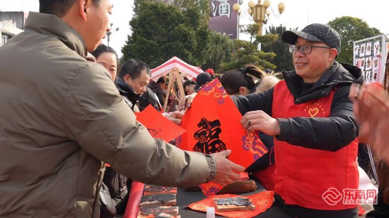 活动现场气氛热烈,墨香四溢。书法家们伏案提笔,挥毫书写,一幅幅寓意吉祥、笔力遒劲的春联和“福”字相继诞生,吸引众多过往群众驻足欣赏、有序领取。