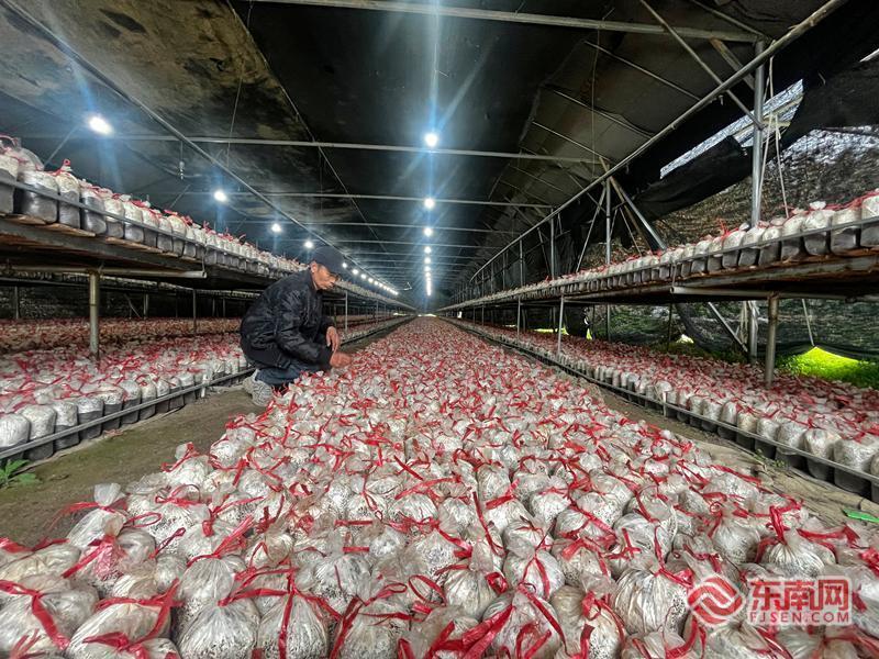 东南网2月11日讯(本网记者 陈艳)闽北新春寒意未消,南平市建阳区莒口镇的田垄间却生机盎然。2月6日,记者走进莒口镇范墩坪村涛涵家庭农场的菇棚里,一排排菌桶整齐码放,袋口鲜红的塑料绳格外醒目,空气中弥漫着食用菌接种的消毒水味。农场主陈宝旺正俯身检查菌桶走菌情况,“这时候是做菌桶、走菌的关键期,菌桶不能被感染,温湿度要适宜,走菌好坏直接决定清明后的出菇率。”