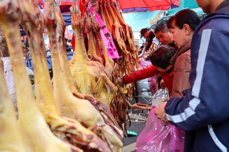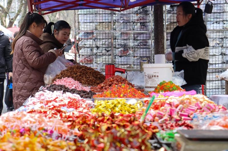 集市内市民们挑选年货