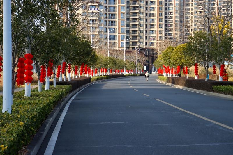 干道两旁红灯笼高高挂起