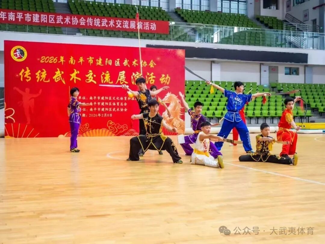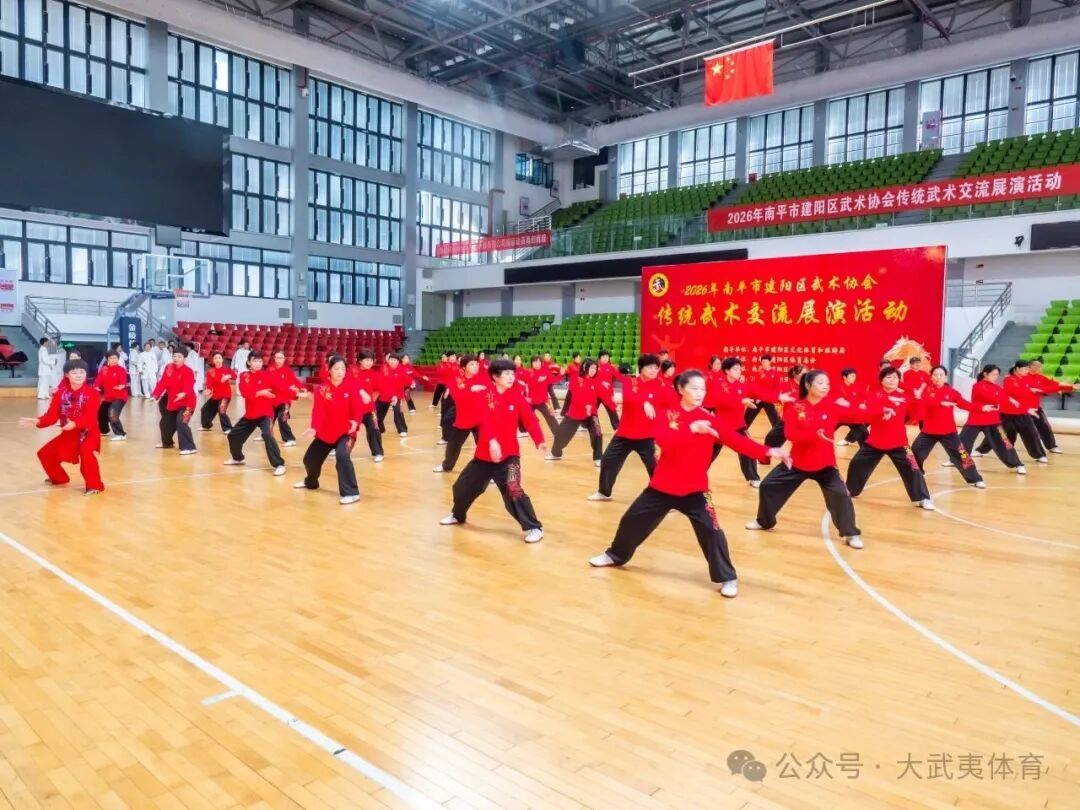 2月8日,2026年建阳区传统武术交流展演活动圆满收官。本次活动由南平市建阳区文化体育和旅游局指导,南平市建阳区体育总会主办,南平市建阳区武术协会承办,紧扣“传承中华武术、弘扬传统文化、展现全民健身风采”主题,汇聚全区各武术站点、太极队伍及武术爱好者300余人,以武会友、切磋技艺,为群众呈现了一场兼具文化底蕴与视觉美感的武术盛宴。
