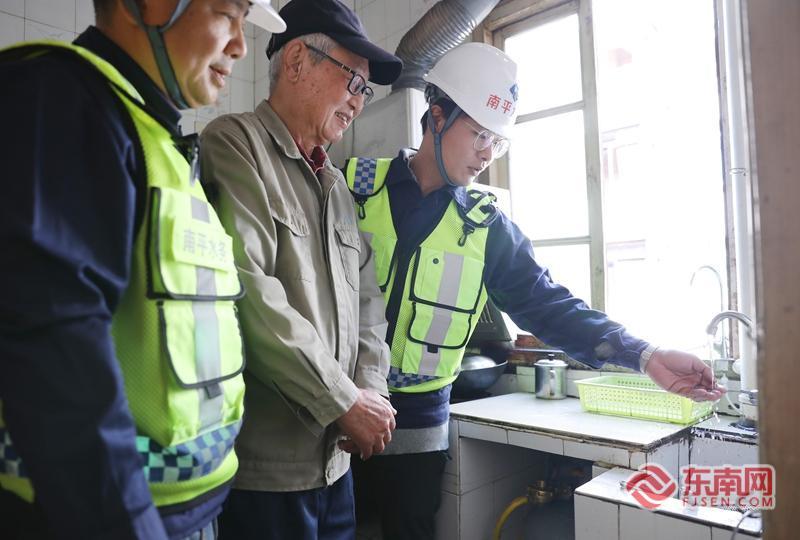 位于南平市延平区水南街道后谷社区的南平水泥股份有限公司家属区内,南平水务公司工作人员为居民丁向生家中入户检查。 黄杰敏/摄