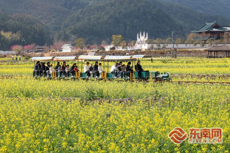 东南网2月19日讯(通讯员 邱汝泉 )2月18日(农历正月初二),游人乘坐小火车在福建武夷山市五夫镇油菜花海中春游踏青赏花。早春时节,五夫镇500亩油菜花田进入盛花期,金灿灿的油菜花争相绽放,吸引游客春游踏青赏花,享受假日生活。 |