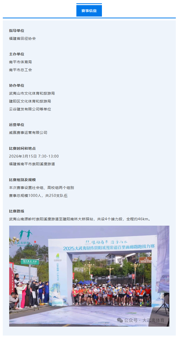 组队参加2026大武夷驿传(春季赛),免费直通2026武夷山马拉松!