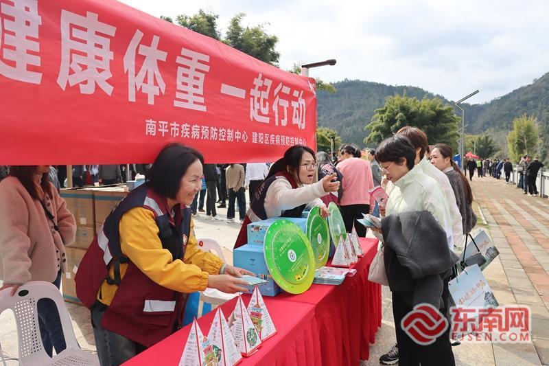 志愿者为参赛选手现场测算体质指数、发放健康宣传资料 东南网记者 张梦媛 摄