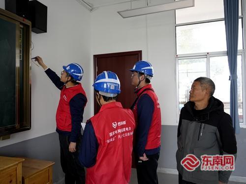 国家电网福建电力(松溪)“双满意”共产党员服务队在教室内检查开关、插座 蔡政 摄