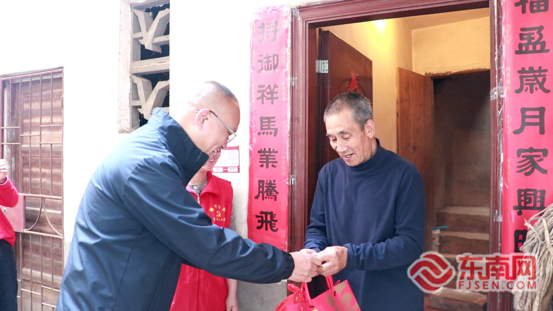 给高龄老人送去慰问礼品