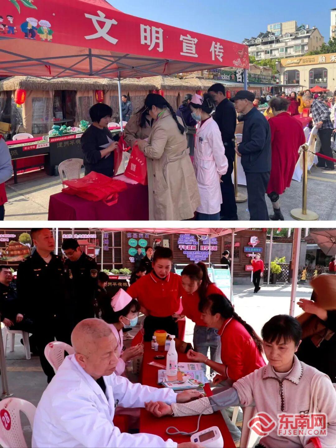 一碗热粥温暖了肠胃,一份真情触动了心灵。在敬老体验区,瓯宁社区的医护人员耐心地为老人们测量血压、检测血糖,细致解答各类健康疑问。市委文明办工作人员开展文明素质宣传,普及八大文明素质内容,通过发放宣传资料,现场宣讲《传承千年建州文脉争当文明有礼市民——建瓯市城市管理提升年专项行动倡议书》等方式,引导群众争做文明市民。市场监管和交警部门的工作人员也同步开展食品安全与交通安全宣传,通过发放宣传资料、进行现场讲解,将“舌尖上的安全”与“出行时的平安”送到老人们身边,用实际行动守护他们的日常生活。