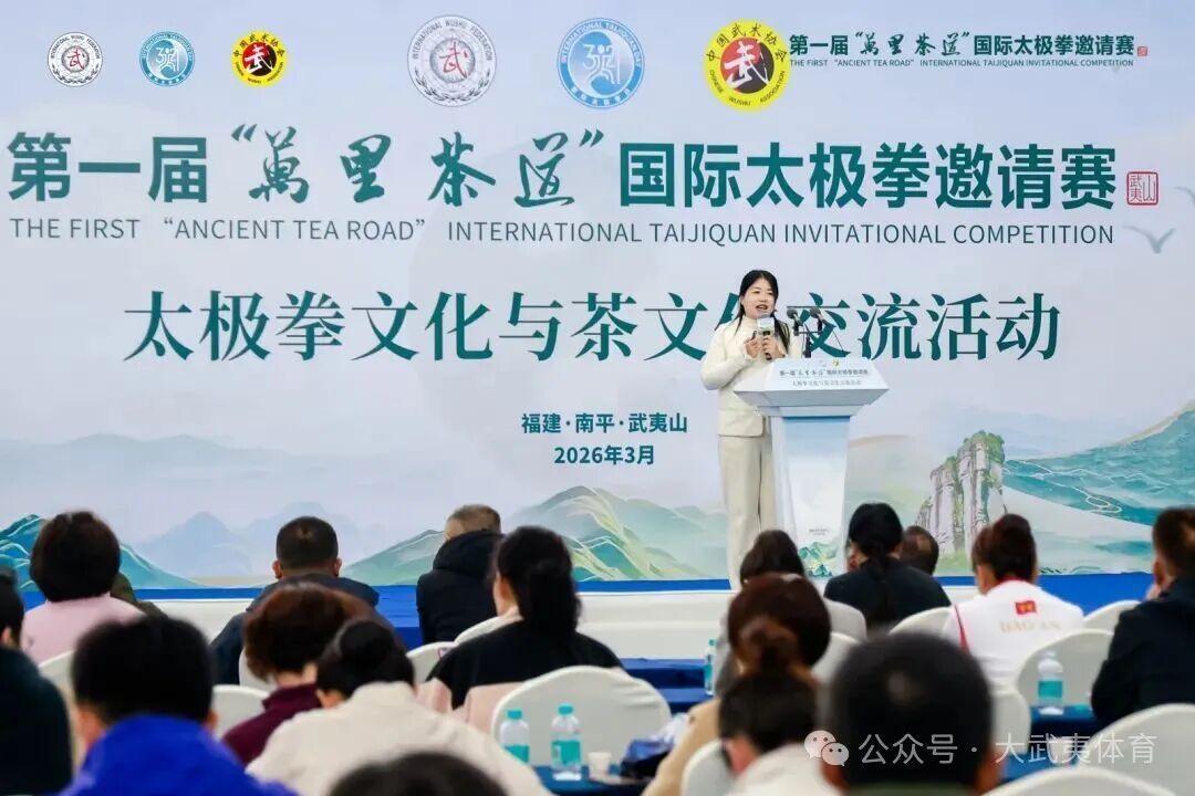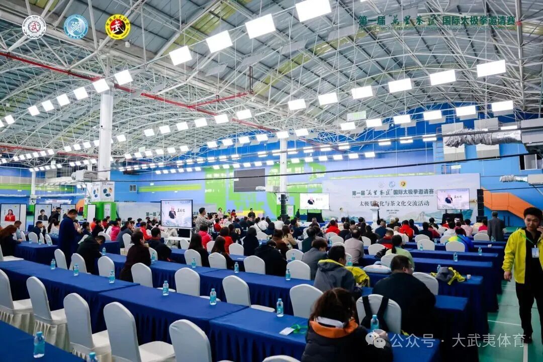 2026年3月21日晚,武夷山爱度运动中心内茶香氤氲、拳意流动。第一届“万里茶道”国际太极拳邀请赛的核心文化交流活动——“太极拳文化与茶文化交流会”在此间举行。
