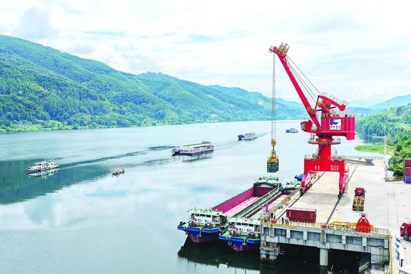 2022年12月,南平港正式开港运营。2025年12月18日,闽江干流迈入千吨级船舶常态化通航新阶段。闽江这条连接福建山海、辐射内陆“黄金水道”的航运复兴,不仅是“十四五”期间福建交通强国建设试点的重要成果,也是国家区域协调发展战略在地方落地生根的生动范例,成为连接山区与沿海港口的重要通道。截至去年底,南平港累计完成货运量72.3万吨,水运物流发展势头强劲。图为“闽江8号”“闽江9号”两艘集装箱货船正在装货。 (资料图片)
